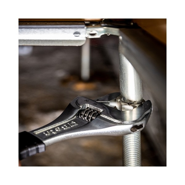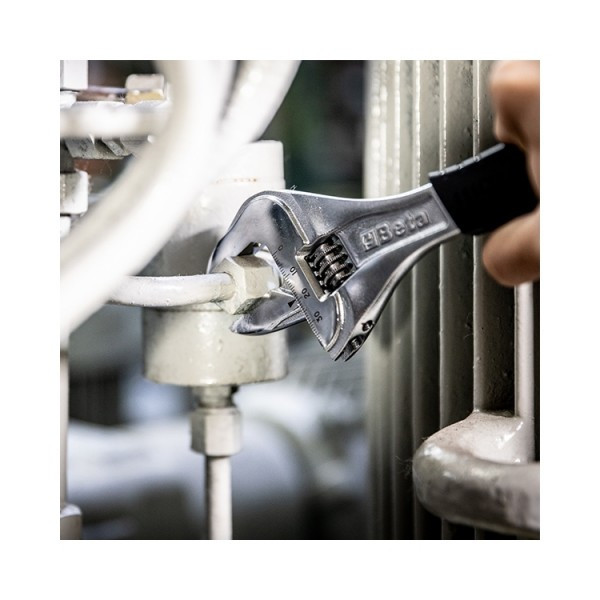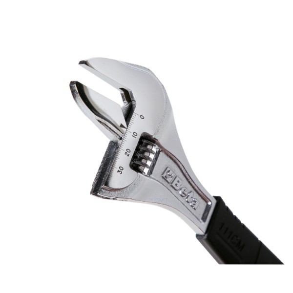 A Beta 111CM új, széles nyílású állítható villáskulcsa fokozatmentesen állítható, így a befogó pofák különböző méretű csavarokhoz méretezhetők.